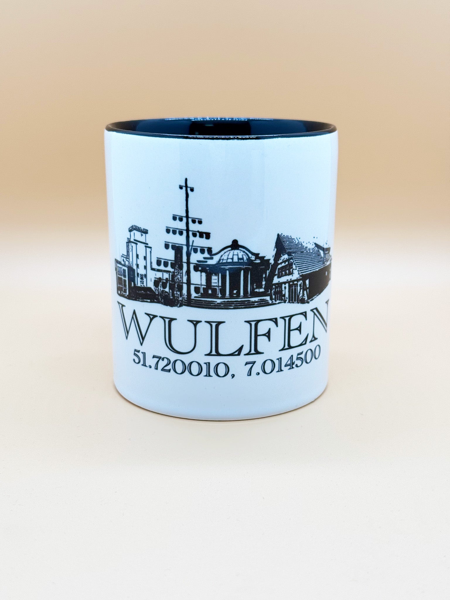 Starte deinen Tag mit Heimatgefühl! Diese hochwertige Keramiktasse (11 oz / 330 ml) ist mit der Wulfener Skyline oder dem Logo vom Wappenbaumverein Wulfen e.V. erhältlich. Dank ihrer klassischen, zylindrischen Form liegt sie angenehm in der Hand und bietet genug Platz für Kaffee, Tee oder andere Lieblingsgetränke.